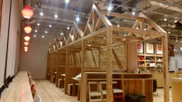 天井が高く開放的な空間の中を 天然木をふんだんに使った内装で 仕上げました。 |