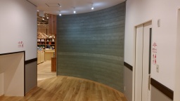 「塗り版築仕上げ」という特殊な左官壁です。 曲面の壁にも施工出来ます。 |