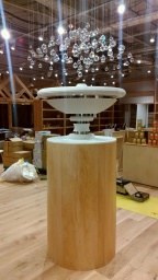 人工大理石とクリスタルガラスで 御客様のロゴマークの噴水を表現しました。 |