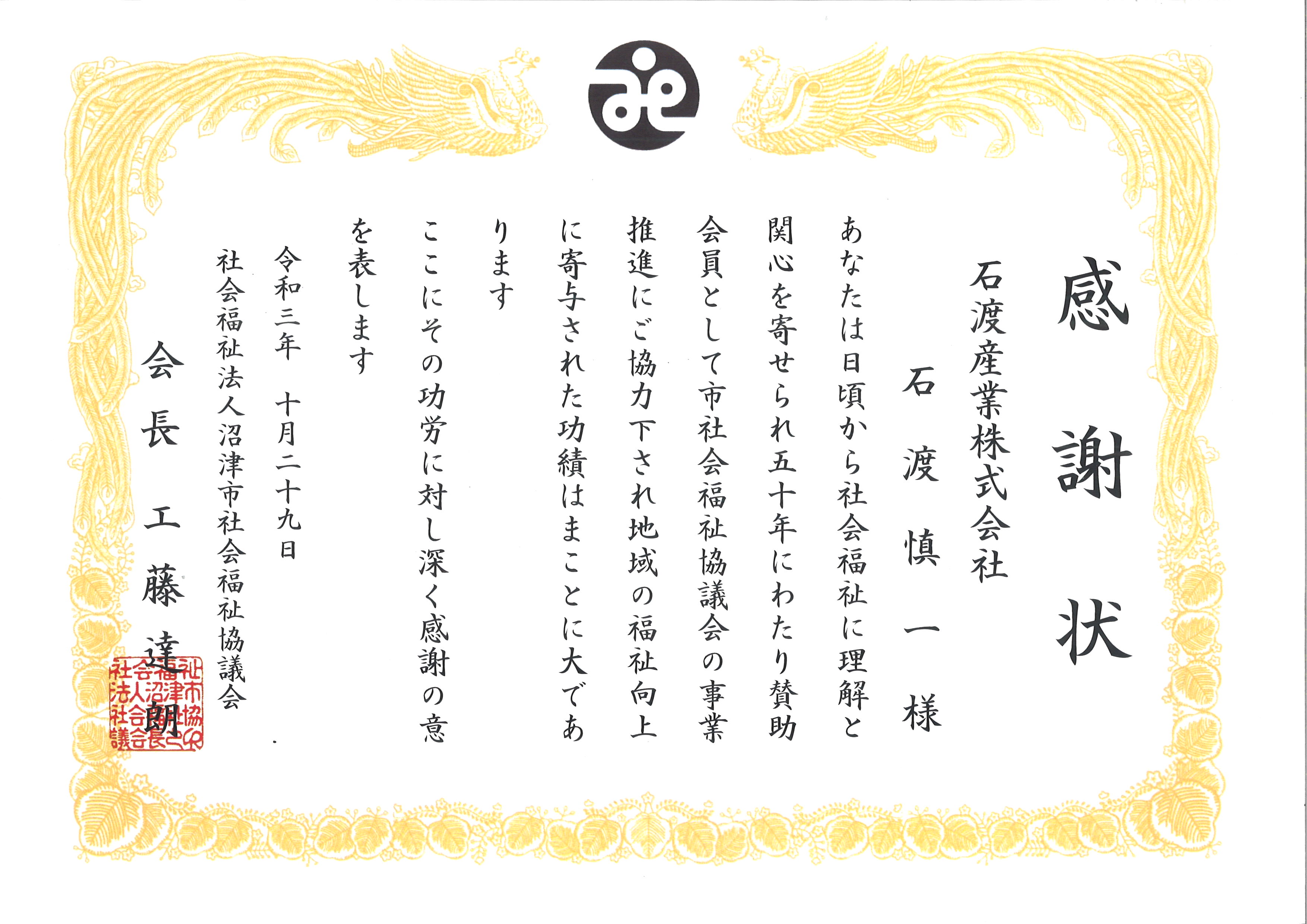 この度、社会福祉法人沼津市社会福祉協議会様から感謝状をいただきました。 会社設立55年を越え、地域に求められる企業として何が貢献出来るのか? 正解はなかなか見つけられませんが、これからも地域の福祉向上に努めてまいります。